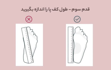 - اگر قرار است کفش را بدون جوراب بپوشید حتما پا برهنه اندازهگیری را انجام دهید. اما اگر قرار است کفش را با جوراب بپوشید، حتما همان جوراب را به پا داشته باشید.