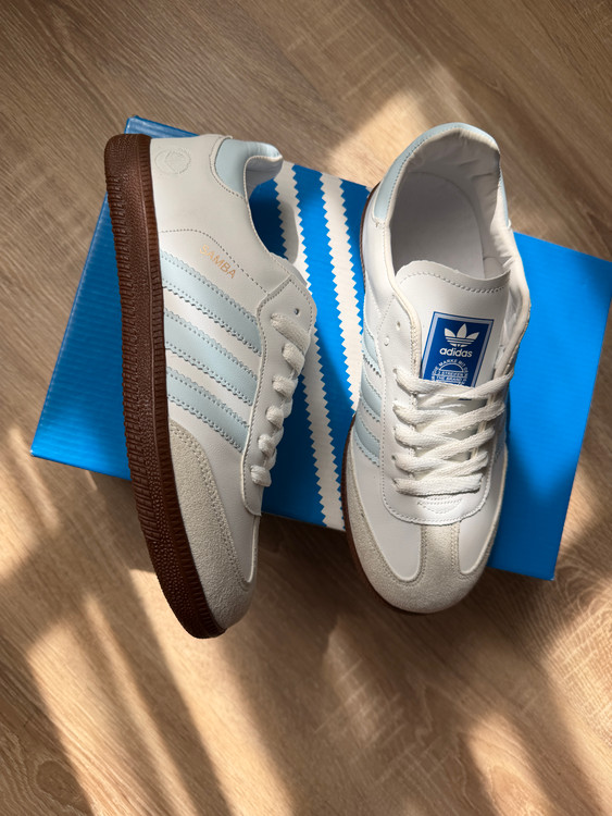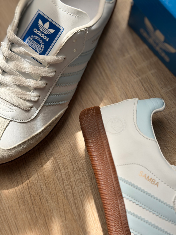 کفش سامبا با رنگ سفید و آبی، دارای سایز بندی ۳۷ تا ۴۰ و اندازه قالب کاملا استاندارد. این کفش دارای استر چرم و زیره نرم و راحت است. ضمانت مرجوعی و تعویض سایز همراه با ضمانت کیفیت.