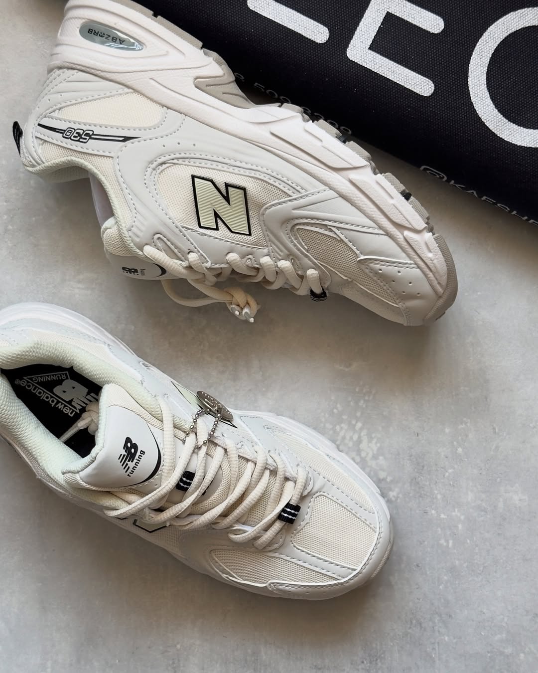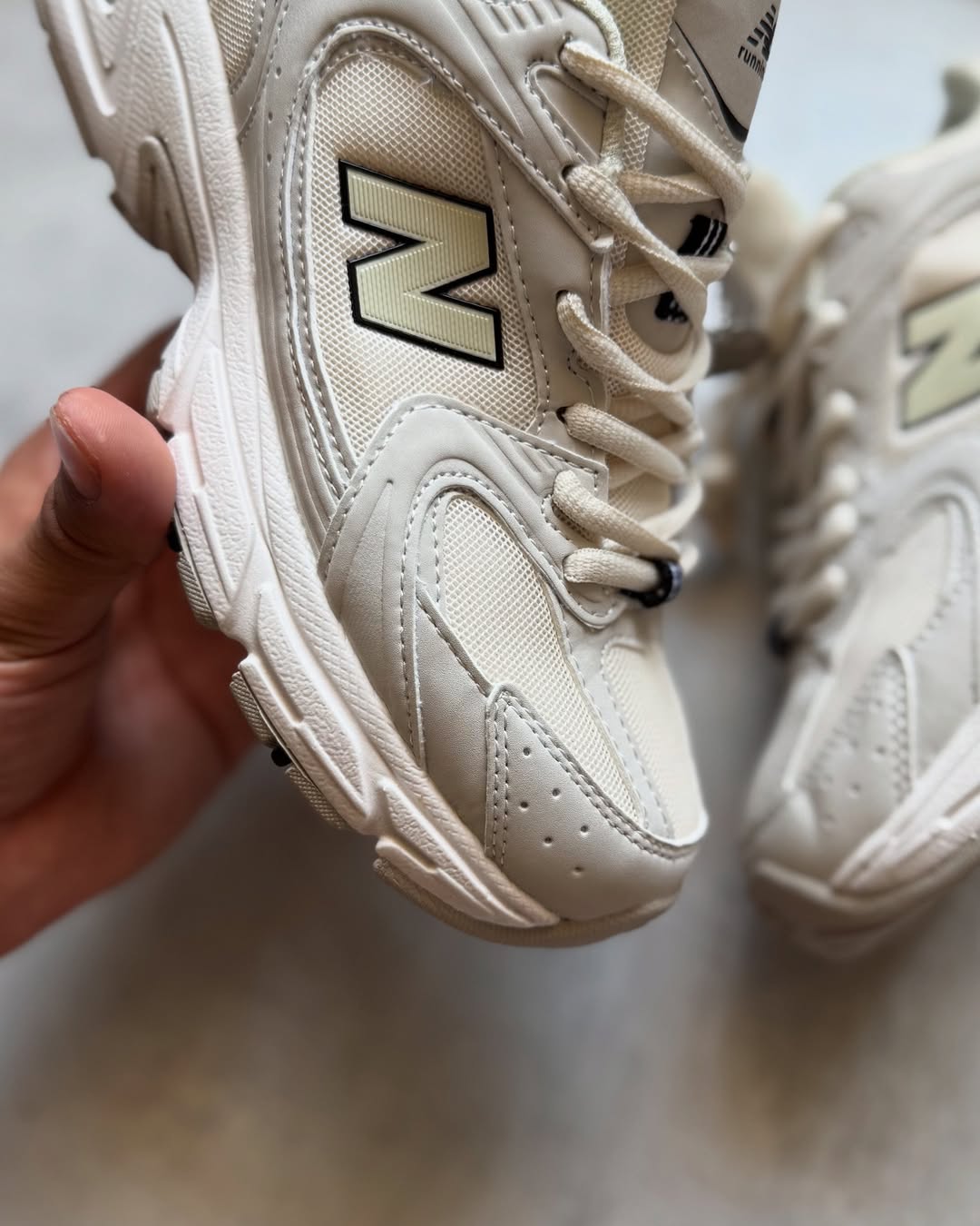 کفش نیوبالانس 530 کرم ویتنام با سایز بندی مختلف و درجه ۱. عکس بدون ادیت زیر نور طبیعی.