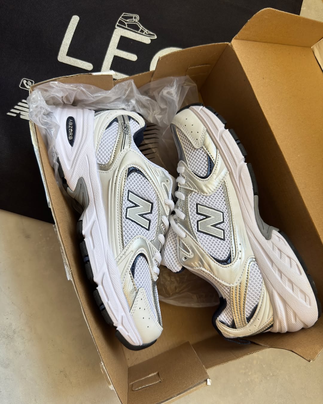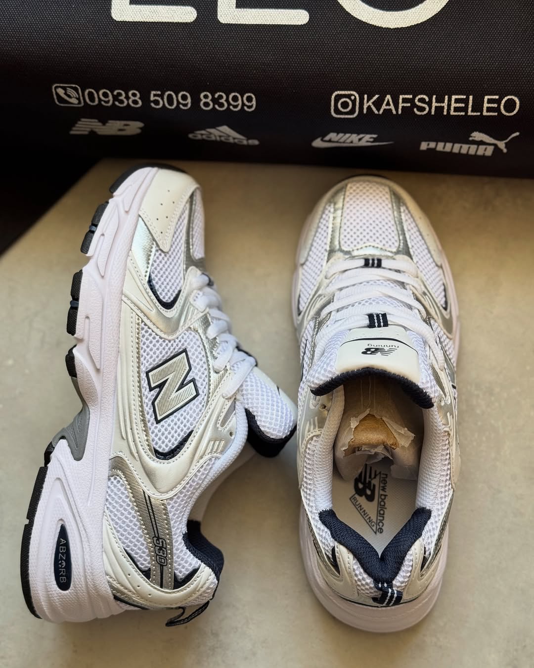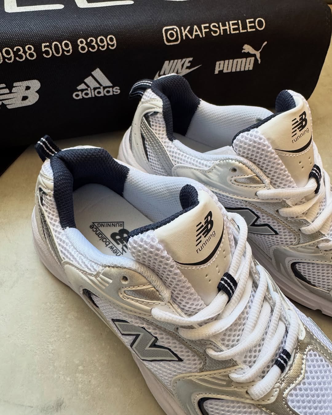 کتانی نیوبالانس ۵۳۰ سفید سورمه ای ویتنام. عکس بدون ادیت زیر نور طبیعی است. به ضمانت مستر کوالیتی. قالب استاندارد.